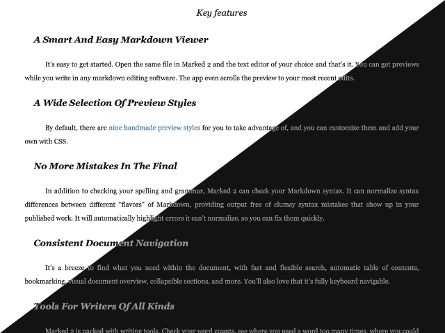 A collection of custom styles available for Marked 2. Have your own and want to share? Use the Custom Style Uploader to submit for review.